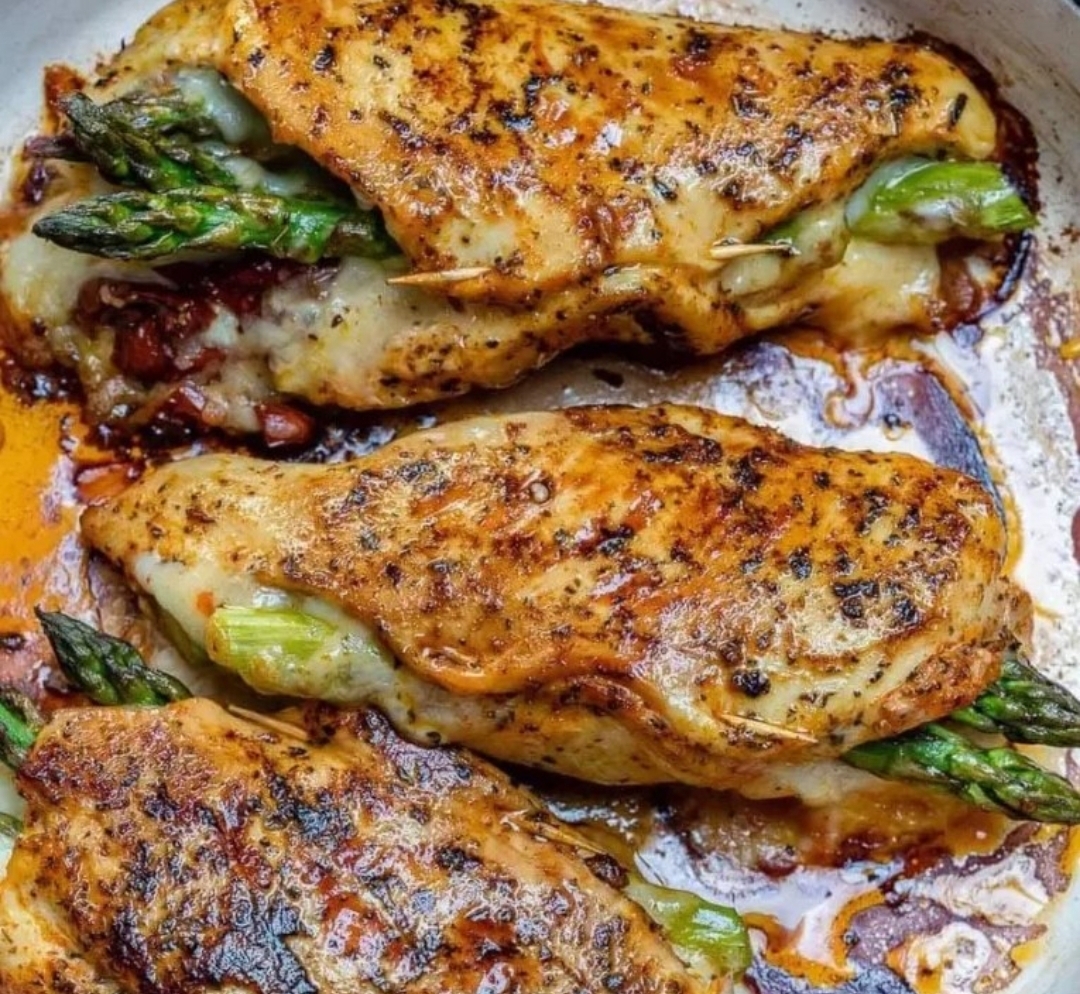 With the abundance of fresh asparagus right now this asparagus stuffed chicken recipe comes to you just in time! Seasoned with garlic powder onion powder herbs paprika salt and pepper you will love the flavours coming out of this pan.