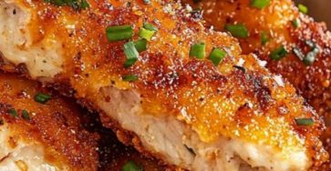 These Crack Chicken Tenders are coated in a savory, crispy layer of crushed Ritz crackers, Ranch seasoning, and Parmesan cheese,…