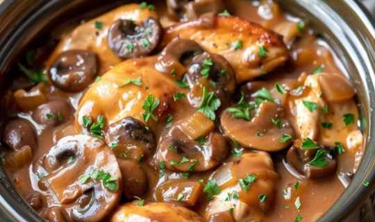 – Serve the chicken and mushroom stew hot, over rice, mashed potatoes, or pasta.