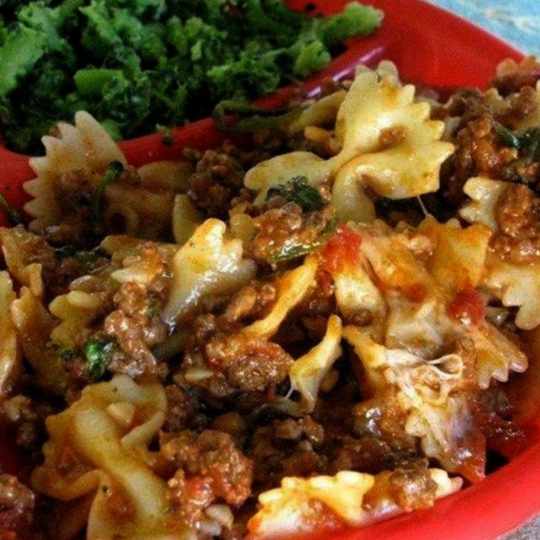 *Brown ground beef with onion and garlic. Put in crock-pot and add sauce, tomatoes and seasonings. Cook for 6-7 hours on low. Add the last 4 ingredients during the last 30 minutes of cooking and turn crock-pot to high. I added the fresh spinach, pasta, parmesan and 1 cup of the mozzarella and I mixed it all up really well. Then I added the last 1/2 cup of mozzarella to melt on the top.