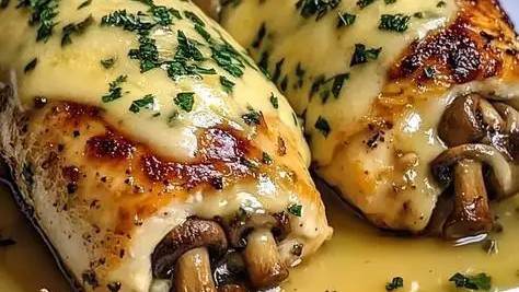 Juicy chicken breasts stuffed with garlic-butter mushrooms and melted cheese, then baked or pan-seared to perfection. This dish feels indulgent but fits beautifully into a Mediterranean-style, balanced meal when paired with vegetables and olive oil.