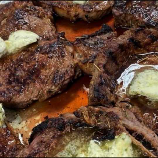 Enjoy your delicious grilled ribeye steaks with herb butter!