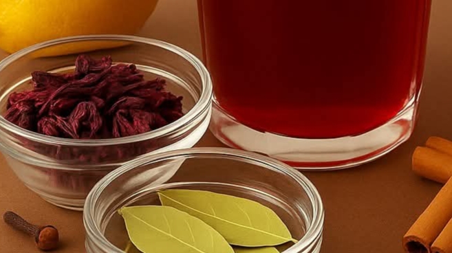 🌺 Hibiscus + Bay Leaves + Cinnamon + Cloves + Lemon + Honey 🍯Ingredients:1 tbsp dried hibiscus flowers2 bay leaves1 small cinnamon stick (or ½ tsp ground)3–4 cloves1 slice of lemon (add at the end)1 tsp honey (optional, after the tea cools slightly)500 ml waterPreparation:Boil the water and add hibiscus flowers, bay leaves, cinnamon, and cloves.Let it simmer for 5–7 minutes, then remove from heat.Strain and add the lemon slice.Once it cools a little, stir in the honey.🌸 Why is this especially good for women?Balances hormones – hibiscus and bay leaves may help regulate the menstrual cycle.Reduces cramps – this combo has a relaxing effect on uterine muscles.Detox & digestion – cinnamon and lemon support the liver and metabolism.Improves circulation – cloves and hibiscus can support heart health and blood flow.Boosts immunity – rich in vitamin C and antioxidants.👉 Together, these ingredients create a powerful, natural blend that supports women’s overall health, energy, and balance.⚠️ PrecautionsWhile hibiscus tea is generally safe, keep these points in mind:Blood pressure medication: Drinking hibiscus tea along with medication may cause blood pressure to drop too low. Consult your doctor if you are on treatment.Pregnancy & breastfeeding: Hibiscus may affect hormone balance and uterine activity; avoid unless approved by a healthcare provider.Blood sugar levels: Hibiscus can lower blood sugar, so diabetics should monitor closely.Allergies: Rare, but possible if sensitive to hibiscus or related plants.💓 Final ThoughtsHibiscus tea is a delicious, natural way to support heart health and balance blood pressure. With its deep ruby-red color, refreshing taste, and proven health properties, this simple flower has earned its reputation as more than just a drink