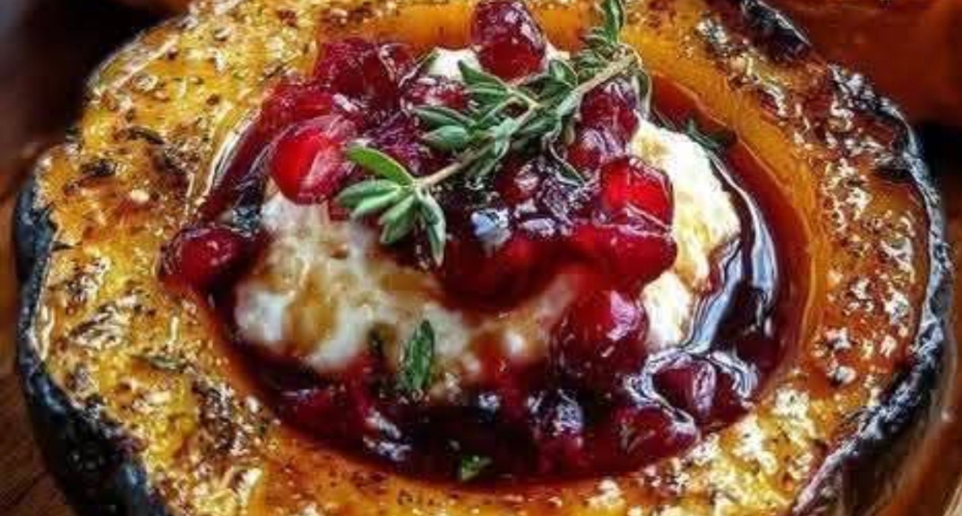 Honey-Glazed Acorn Squash with Creamy Goat Cheese and Cranberry DrizzleThis dish is the perfect balance of sweet and savory, featuring tender, roasted acorn squash glazed with honey, topped with creamy goat cheese, and finished off with a tart cranberry drizzle. It’s an elegant and flavorful side dish or appetizer that’s sure to impress during any holiday gathering or dinner party. The warm, caramelized squash paired with the richness of goat cheese and the fresh zing of cranberries makes for a delicious combination.Ingredients:For the roasted squash:2 small acorn squashes (about 1 lb / 450 g each), halved and seeds removed2 tablespoons (30 ml) olive oil2 tablespoons (30 ml) honeySalt and freshly ground black pepper, to tasteFor the creamy goat cheese and cranberry drizzle:½ cup (100 g) creamy goat cheese¼ cup (60 ml) cranberry sauce or compoteFresh thyme or parsley, for garnishDirections:1. Preheat the oven:Preheat your oven to 400°F (200°C).2. Prepare the squash:Brush the cut sides of the acorn squash halves with olive oil and honey.Season with salt and freshly ground black pepper to taste.3. Roast the squash:Place the squash halves on a baking sheet and roast in the preheated oven for 25–30 minutes, or until the squash is tender and the edges are caramelized.4. Cool the squash:Remove the squash from the oven and let it cool slightly for easier handling.5. Top and garnish:Once cooled slightly, top each squash half with creamy goat cheese and a spoonful of cranberry sauce or compote.Garnish with fresh thyme or parsley for an extra touch of flavor and color.6. Serve warm:Serve the squash warm as a delightful side dish or appetizer.This honey-glazed acorn squash with goat cheese and cranberry drizzle is a stunning dish that offers a delightful combination of flavors, making it a perfect addition to any festive meal or cozy dinner. Enjoy!