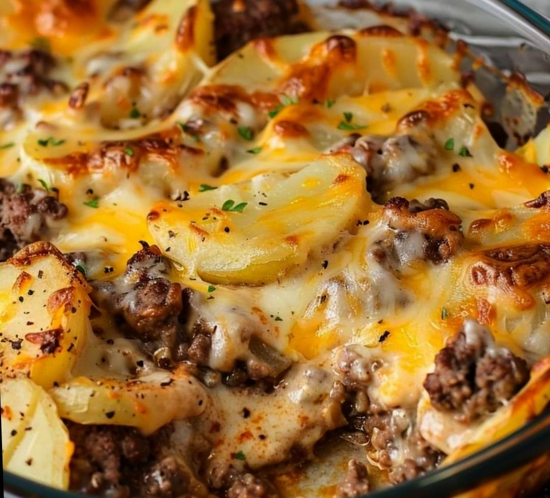 Get everything ready by preheating the oven:The oven should be preheated to 350°F, or 175°C.If you want, you may peel the potatoes and then thinly slice them. Put aside.To Prepare the Ground Beef:The ground beef and onion should be cooked in a pan over medium heat until the meat is browned and the onion is tender. Remove any surplus of fat.Add salt and pepper according to your preference.The ezoicGet the Creamy Sauce Started:Whip the sour cream, milk, and condensed soup together in a bowl until smooth.Put the Casserole Together:Split the sliced potatoes in half and arrange them in a greased 9×13 inch baking dish.Coat the potatoes with half of the cooked ground meat.Toss the potatoes and meat with half of the creamy sauce.Pile on top of each other the leftover steak, potatoes, and sauce.Add some shredded cheddar cheese and a pinch of paprika or dry herbs on top, if desired.Put the dish in the prepared oven and bake it for 1 hour, covered with aluminum foil.After 20 to 30 minutes without foil, the potatoes should be soft and the topping should be golden and bubbling.To make serving the casserole simpler, let it cool for a few minutes so it can solidify and slice more easily.Finding your way around this post