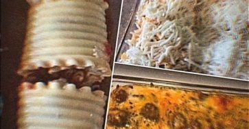 Lasagna rolls. You’ll need 10 lasagna noodles, 1 lb ground beef, 1 roll sausage, 1 diced medium onion, 3/4 container…