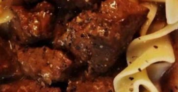 BEEF TIPS, EGG NOODLES AND CREAMY GRAVY