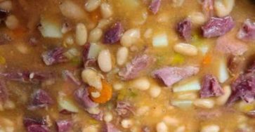 Ingredients: °Half a cup of brown sugar°1 onion (chopped)°1 ½ lbs. smoked ham°1 pound Great Northern beans°Salt and pepper to…