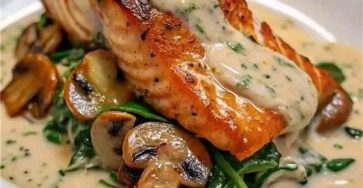 Garlic Butter Salmon with Spinach & Mushrooms in Creamy Sauce
