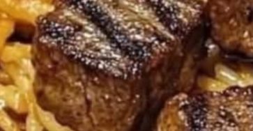 Sizzling Garlic Butter Steak Bites with Creamy Spaghetti