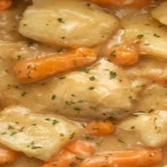 Next put the chicken, potatoes and carrots in the slow cooker. In the crock pot, add the sauce and toss all over the top of these items.