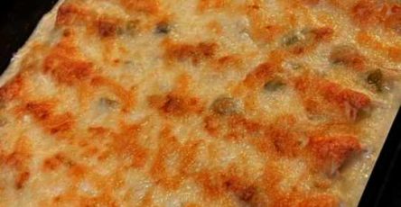 6. Repeat the layers—ravioli, meat, tomatoes, and cheese—until all ingredients are used up, finishing with a cheese layer on top.