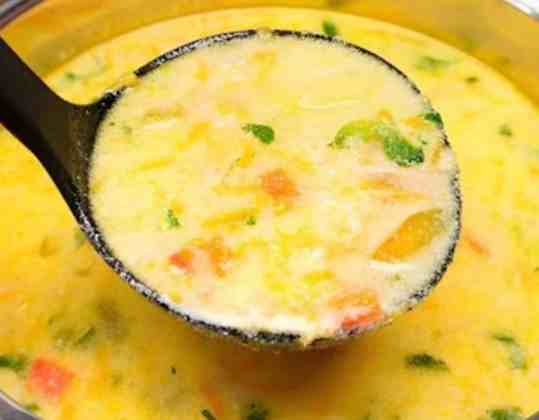 Present the soup hot in ladles into bowls. Savour your good and nutritious vegetable soup.