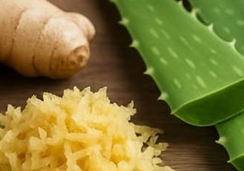 - In a blender, combine the chopped ginger, aloe vera gel, and water or coconut water. Blend until you have a smooth mixture.