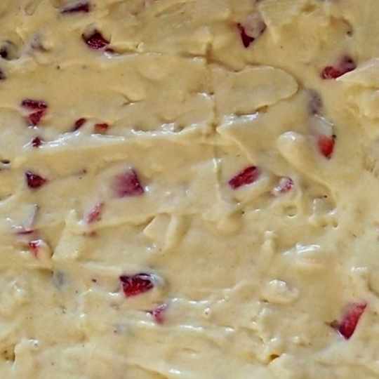 Step 1: Gently fold in the red and green gumdrops until they are evenly distributed throughout the nougat mixture.